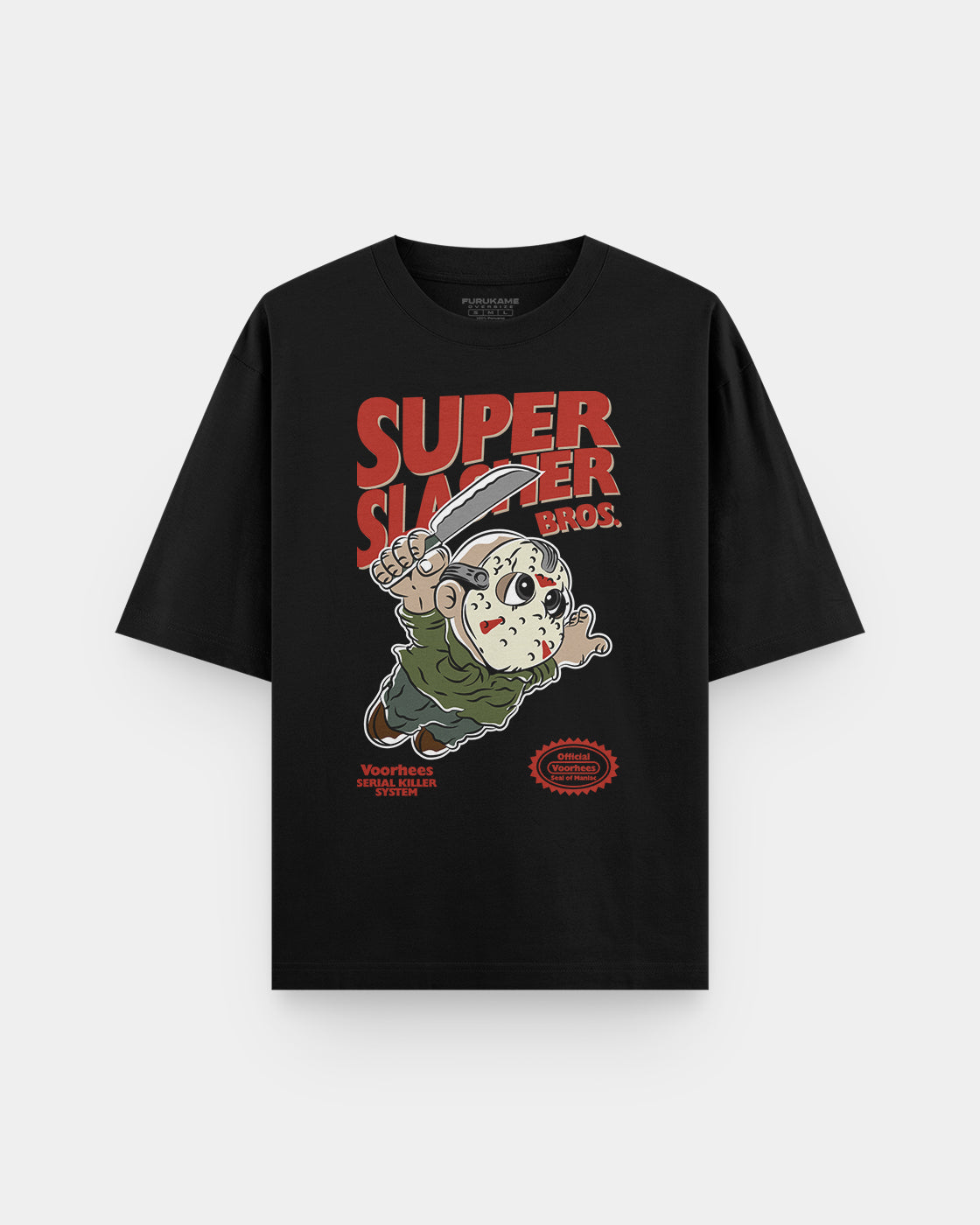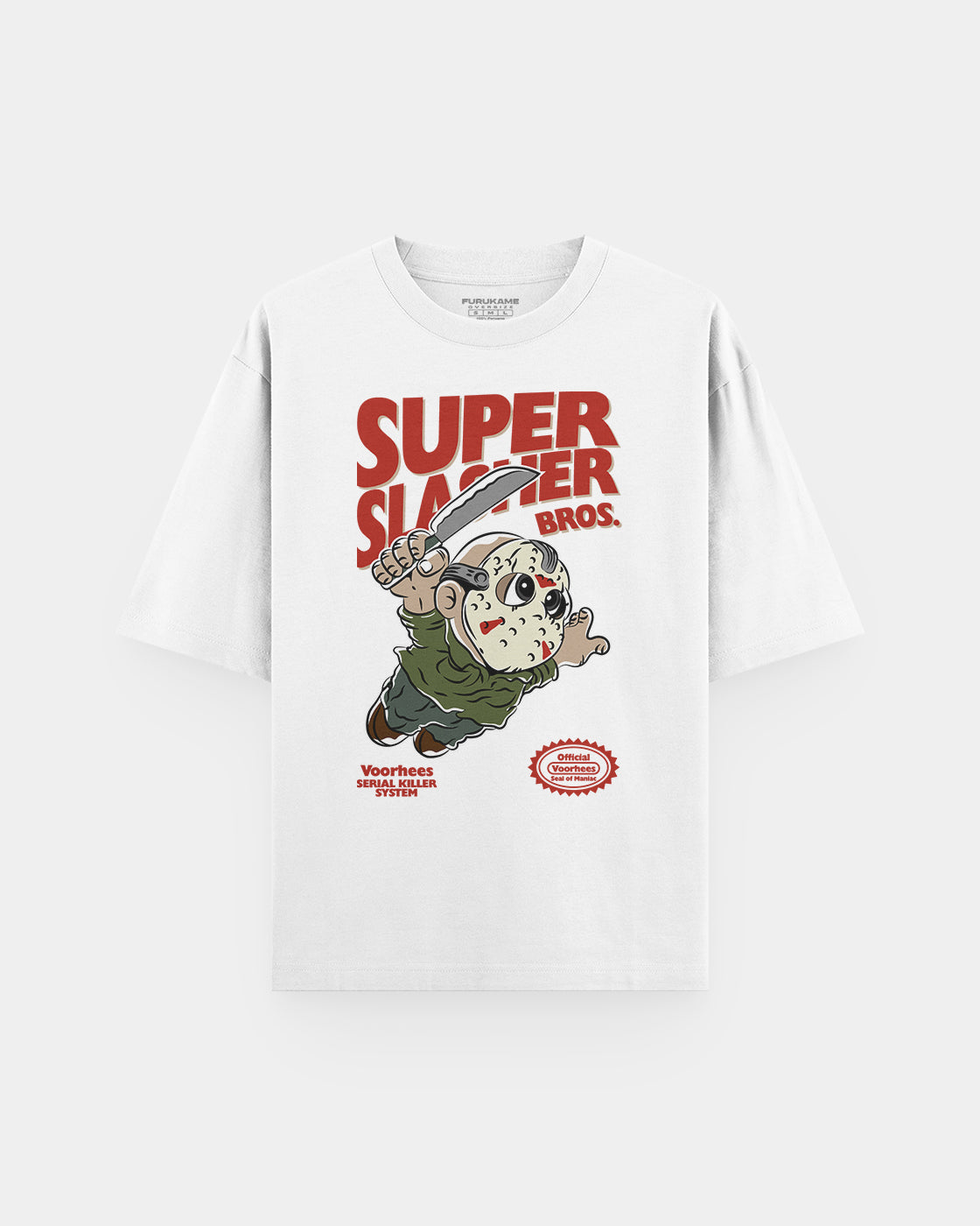 Lleva el clásico slasher de los 80 contigo con este polo OVERSIZE de Jason Voorhees, el rostro de Friday the 13th.